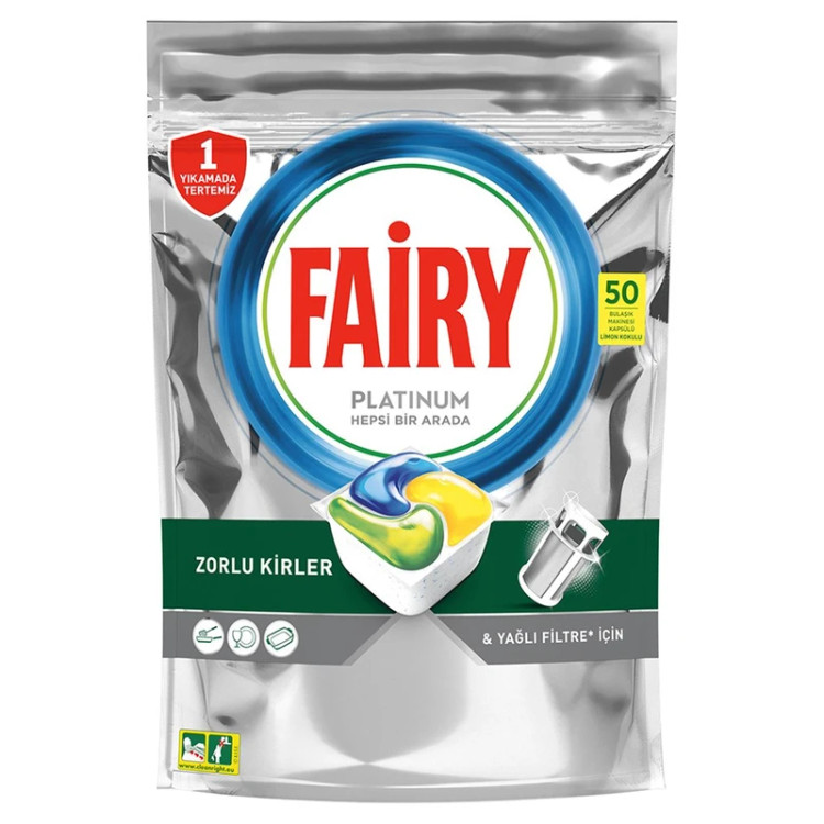 ویژگیهای Fairy® Platinum Bulaşık Makinesi Tableti, 50'li