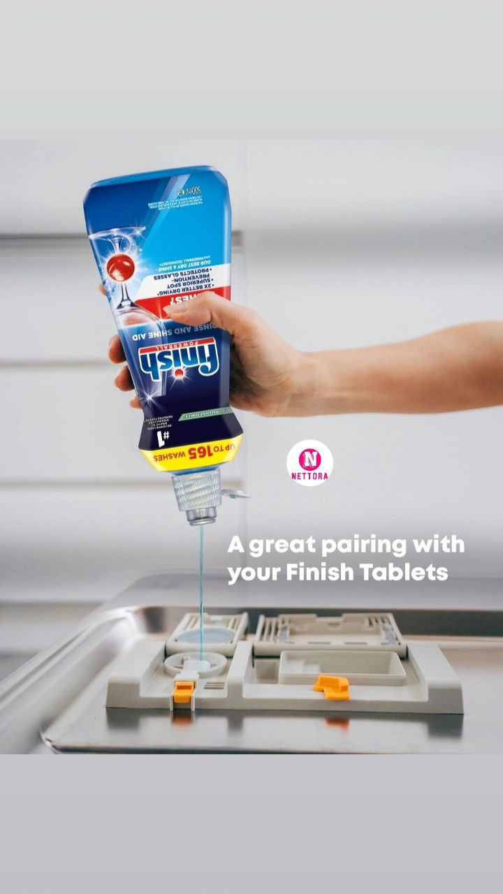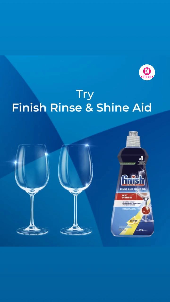 جلادهنده ماشین ظرفشویی فینیش (Finish Rinse Aid) مایعی شفاف است که در مرحله آبکشی پایانی استفاده میشود و باعث خشکشدن سریع و درخشش ظروف میگردد.
