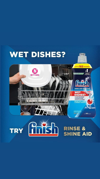 جلادهنده ماشین ظرفشویی فینیش (Finish Rinse Aid) مایعی شفاف است که در مرحله آبکشی پایانی استفاده میشود و باعث خشکشدن سریع و درخشش ظروف میگردد.