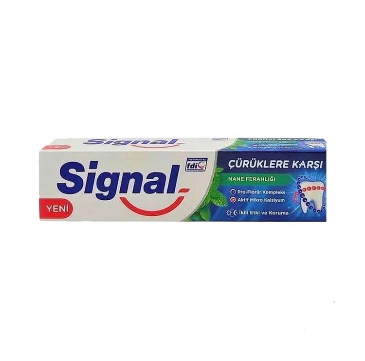 خمیردندانهای Signal ساخت ترکیه 🇹🇷 معروفن به ترکیب حرفهایشون از فلوئور، مواد سفیدکننده ملایم و عصارههای گیاهی طبیعی 🌿 که هم دندونا رو سفید میکنه، هم از پوسیدگی جلوگیری میکنه 🦷💎